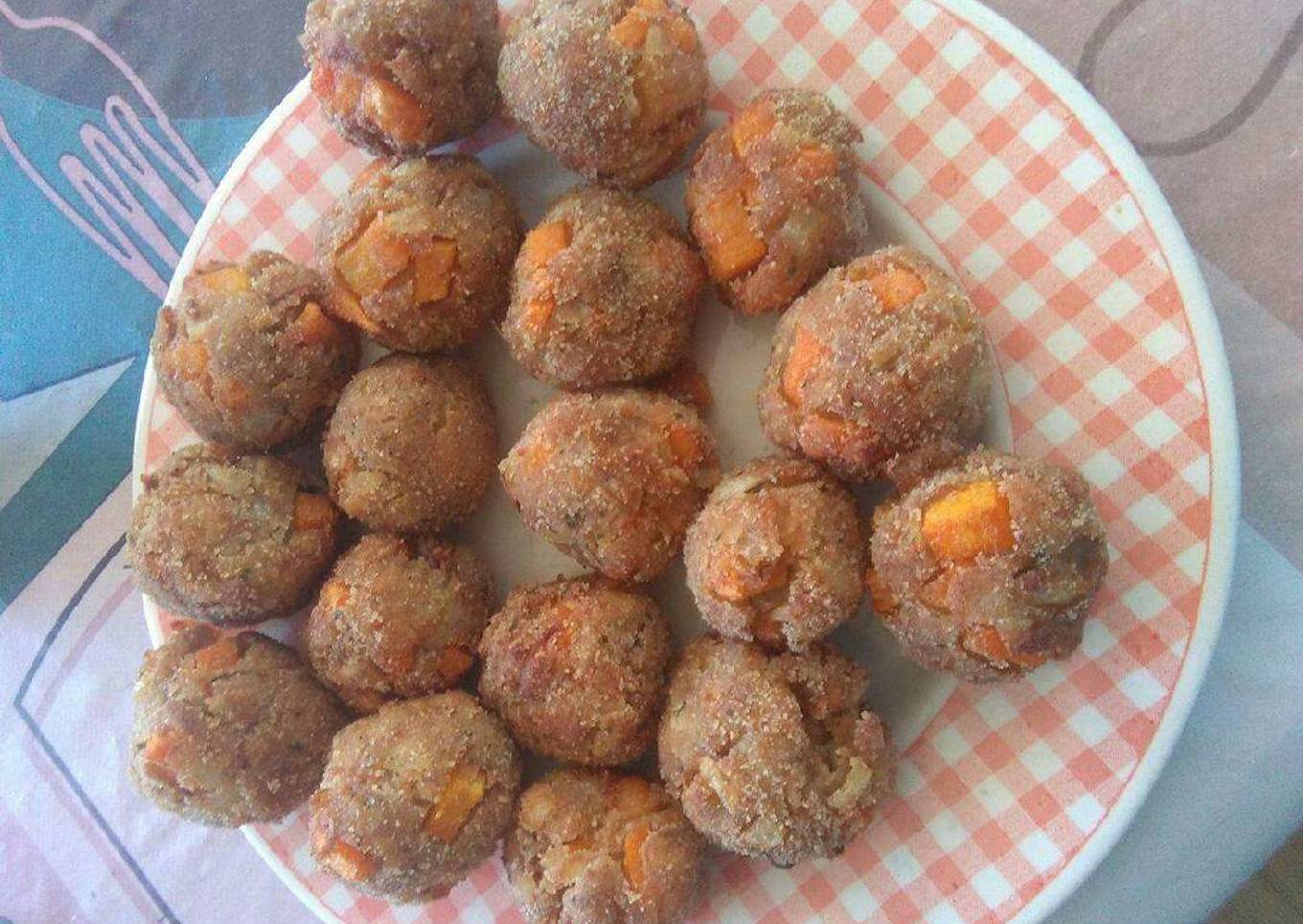 - Pasamos las bolas sólo por pan rallado y le damos forma, una vez las tengas, meter en la freidora para dorarlas bien.