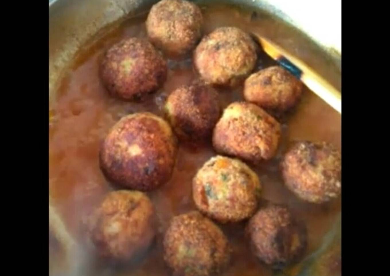- En una sartén colocamos el aceite lo llevamos a fuego medio, cuando este bien caliente colocamos de a una las albóndigas reservadas, dejamos dorar, las sacamos del aceite y dejamos en bandeja con papel absorbente y volvemos a reservar.