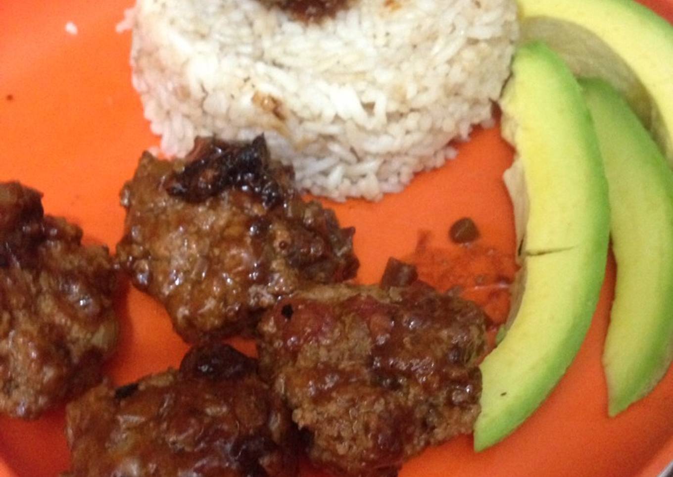 - Para la salsa puedes picar los vegetales en cuadritos muy pequeños, sofreír a fuego lento, y añadirle las especias al gusto, incluir todas las salsas mencionadas en la lista de ingredientes, añadir curry, aliño y cualquier otra especia. A la carne agregarle pan rallado y hacer bolitas y colocarlas en la sartén junto con la salsa