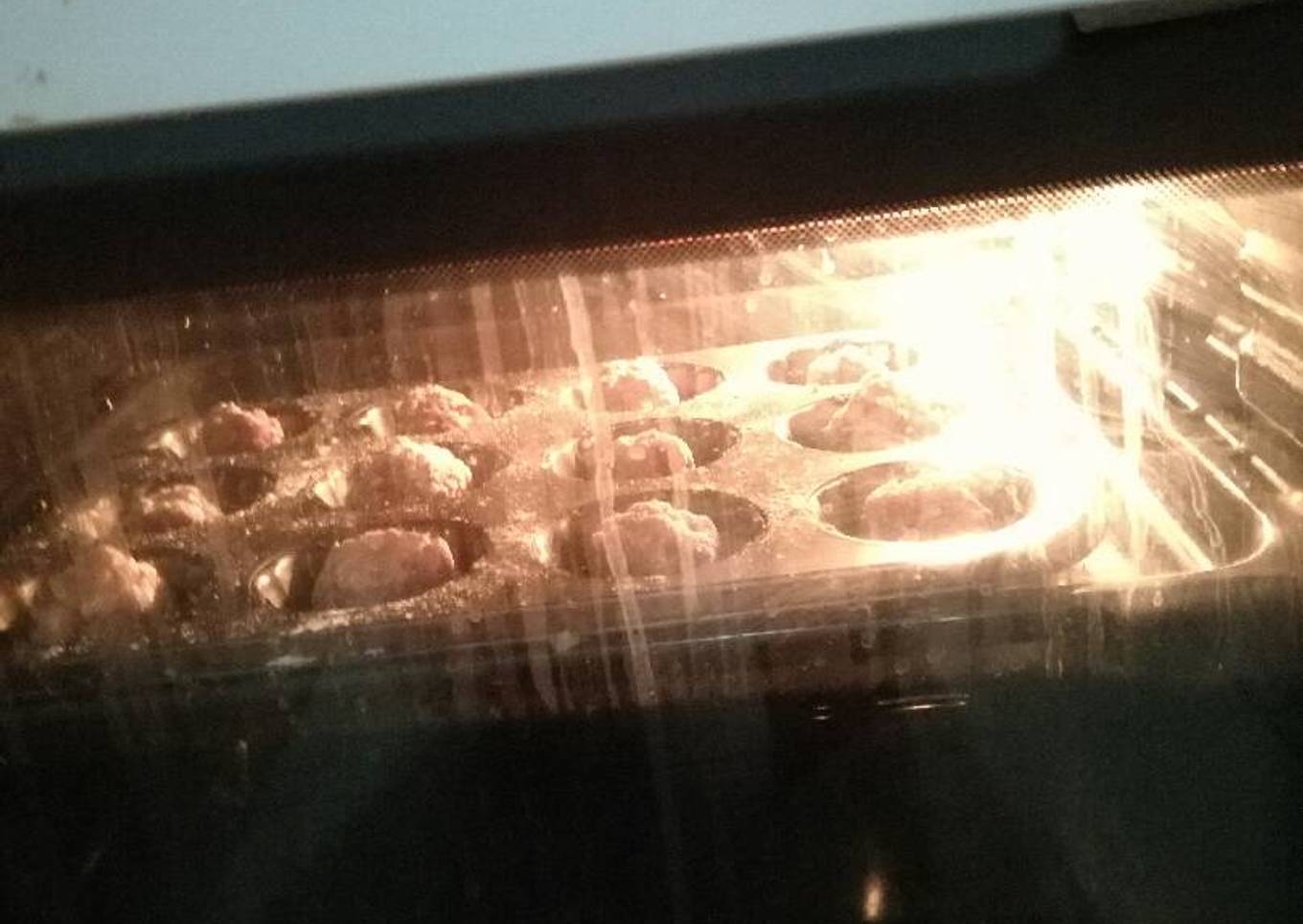 - En una bandeja para horno (cualquiera que quepan las albóndigas aunque ocupé una de cupcakes) a 150° se ponen 20 minutos las albóndigas