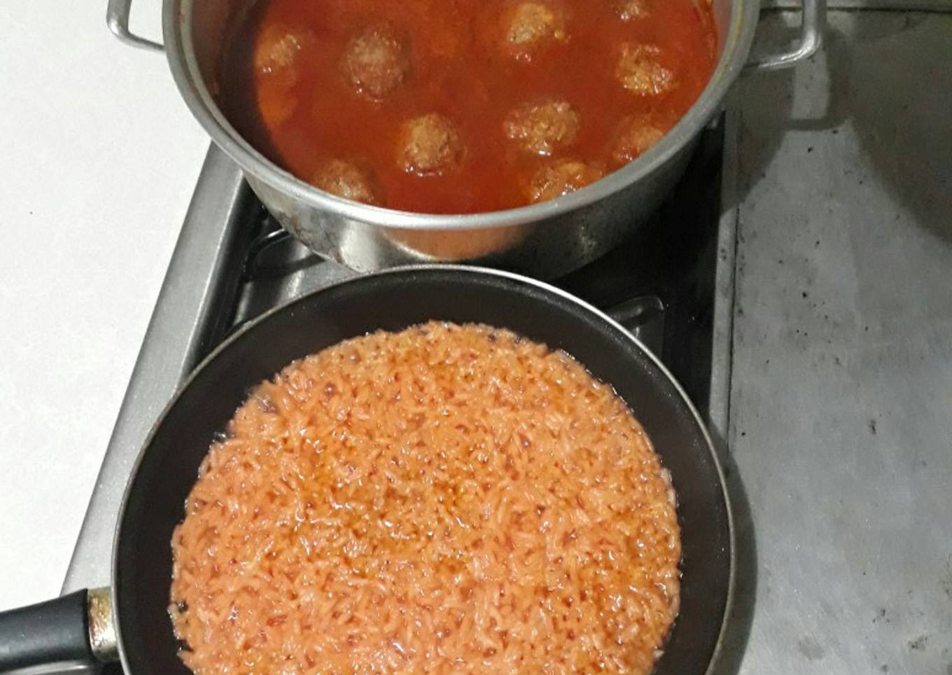 Albóndigas mexicanas rellenas de huevo acompañadas con arroz