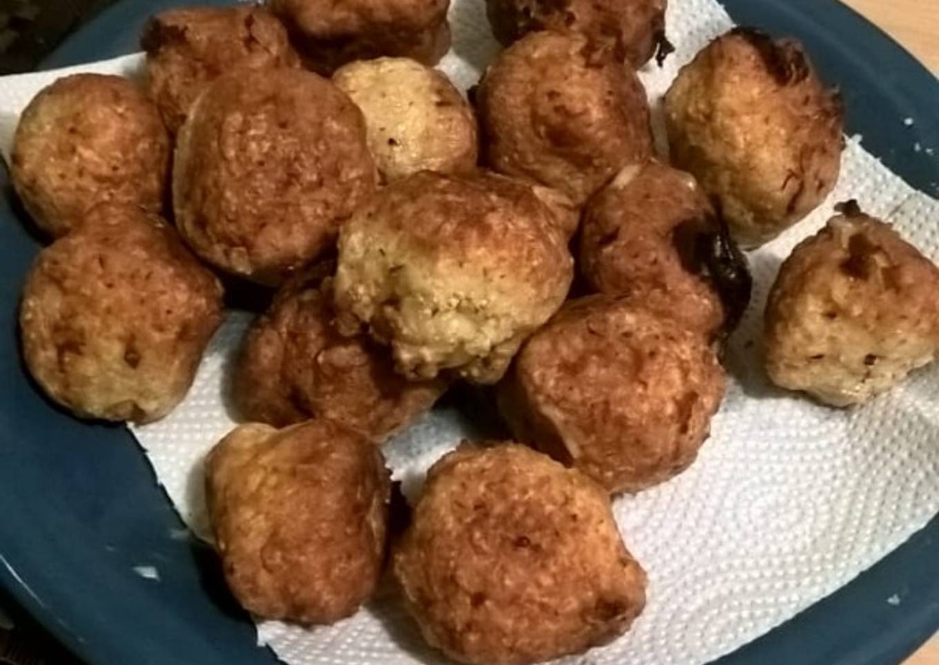 - Calentar aceite en una sartén, y colocar cada bolita en aceite caliente.