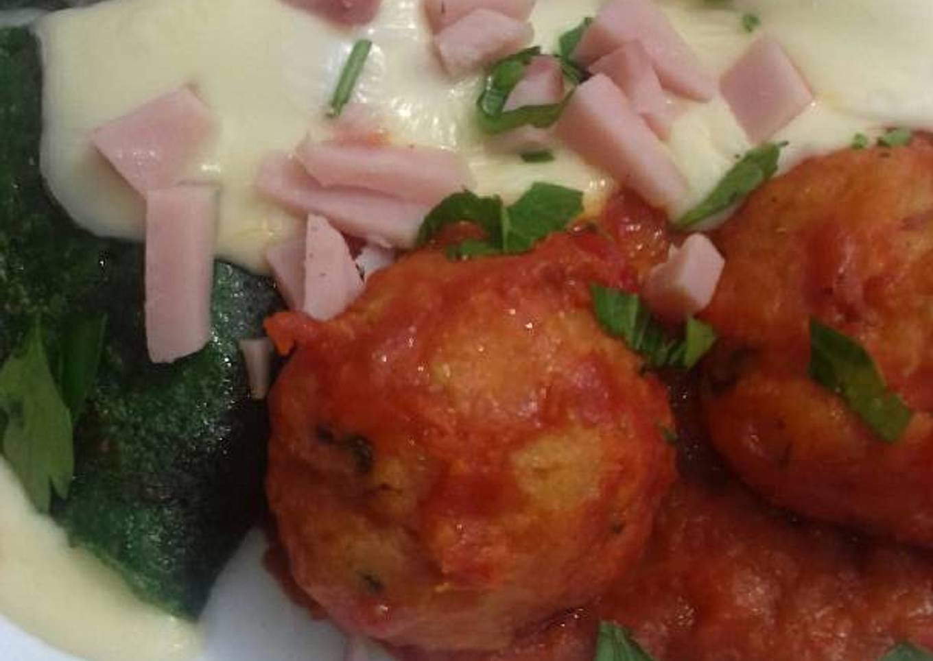 Omelette de acelga con albóndigas