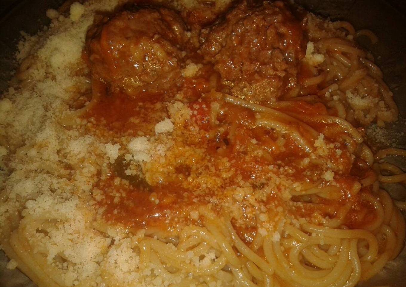 Spaguetti con estofado de albóndigas